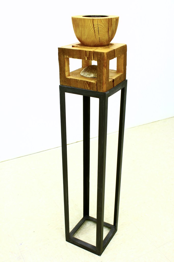 Turned and burnt white pine, bronze, steel 2011-12