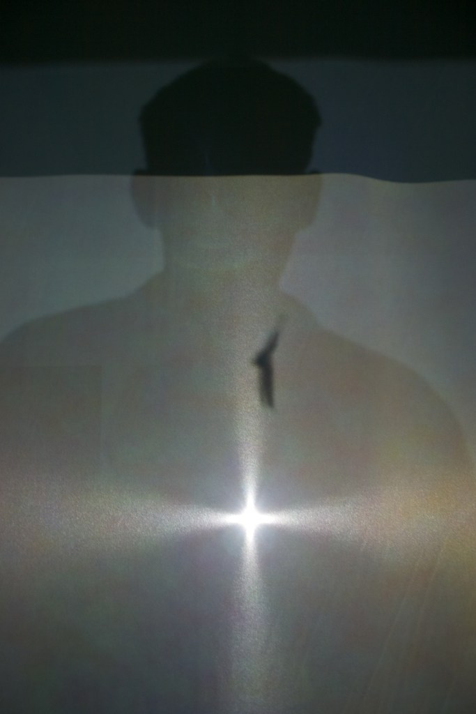 Installation with scrim, two projectors