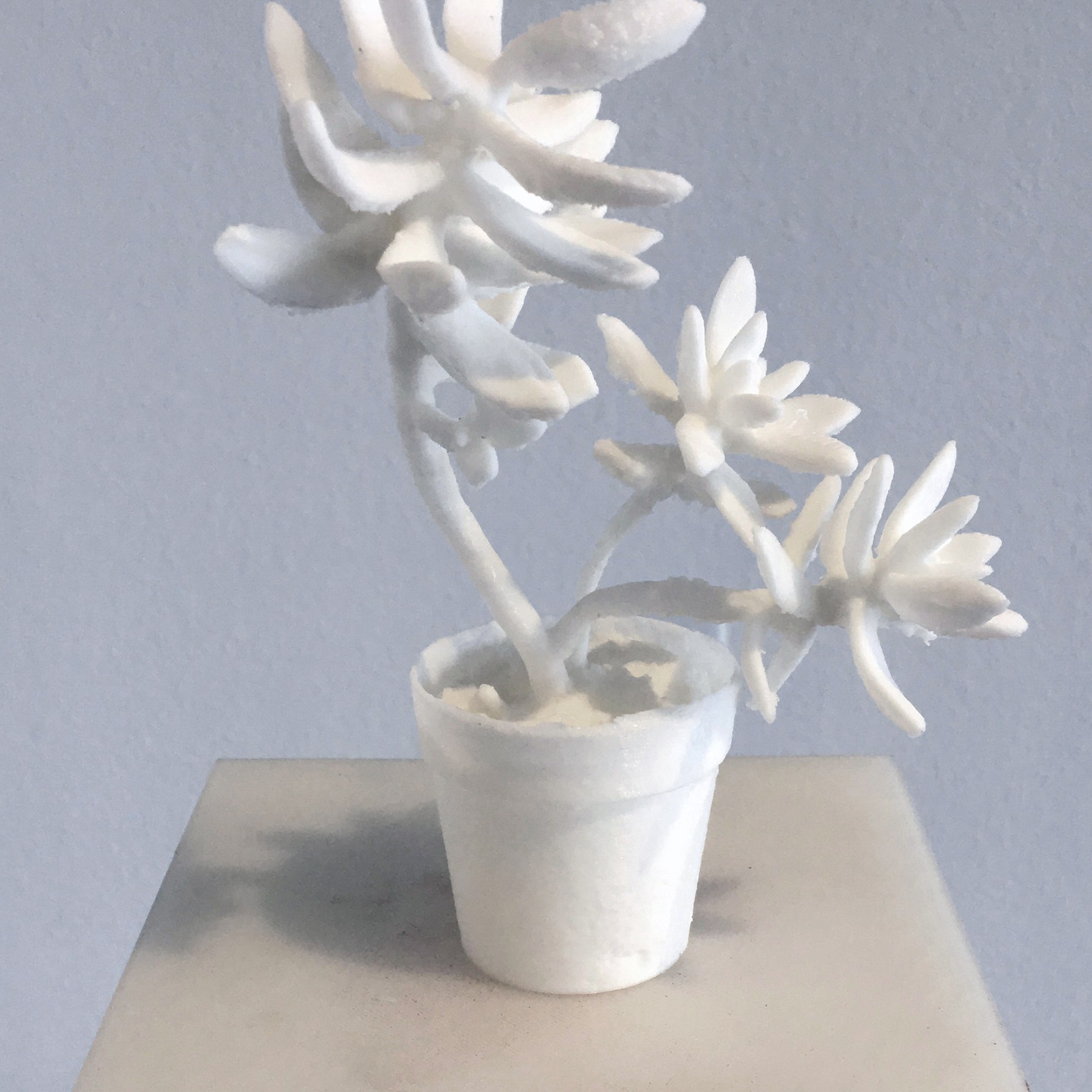 Plant Studies is a practice of combining ecology, digital fabrication, and aesthetics. Each plants is scanned and printed using transparent PLA filament. The plant-based filament reproduction contradicts the organic and natural qualities of the original plant while exposes new layers to the representation of an object and essence.